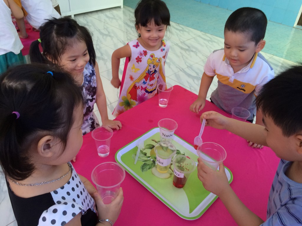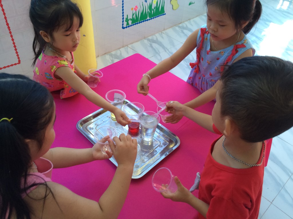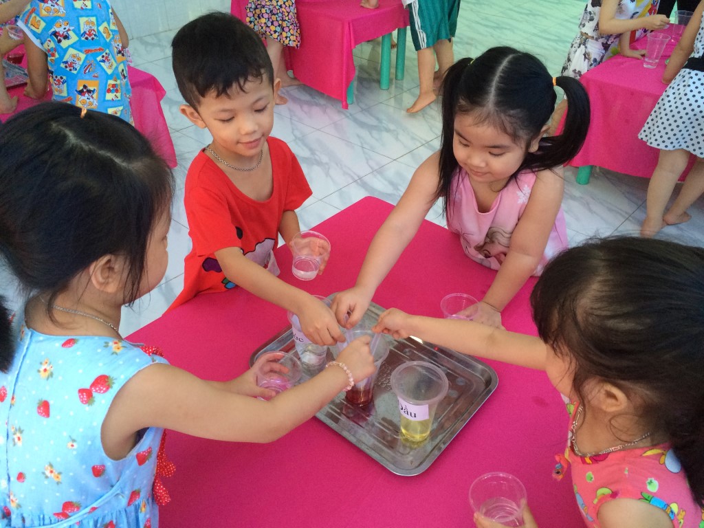 83. Hoạt động khám phá khoa học của lớp Lá (các lớp chất lỏng) tháng 7/2016